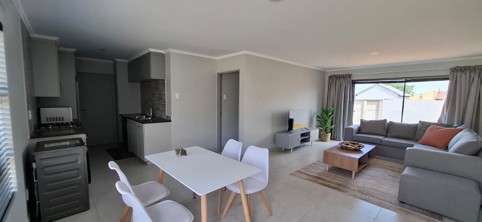 This neat and comfortable unit offers three well-sized bedrooms, a full bathroom, and an open-plan kitchen and lounge area, creating a practical and inviting living space.